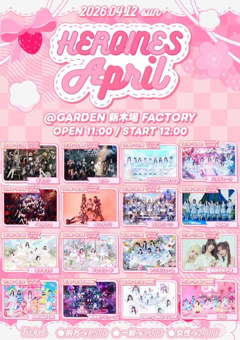 LIVE情報 2026年4月12日:『HEROINES April』@GARDEN新木場FACTORY|iON!【アイオン】